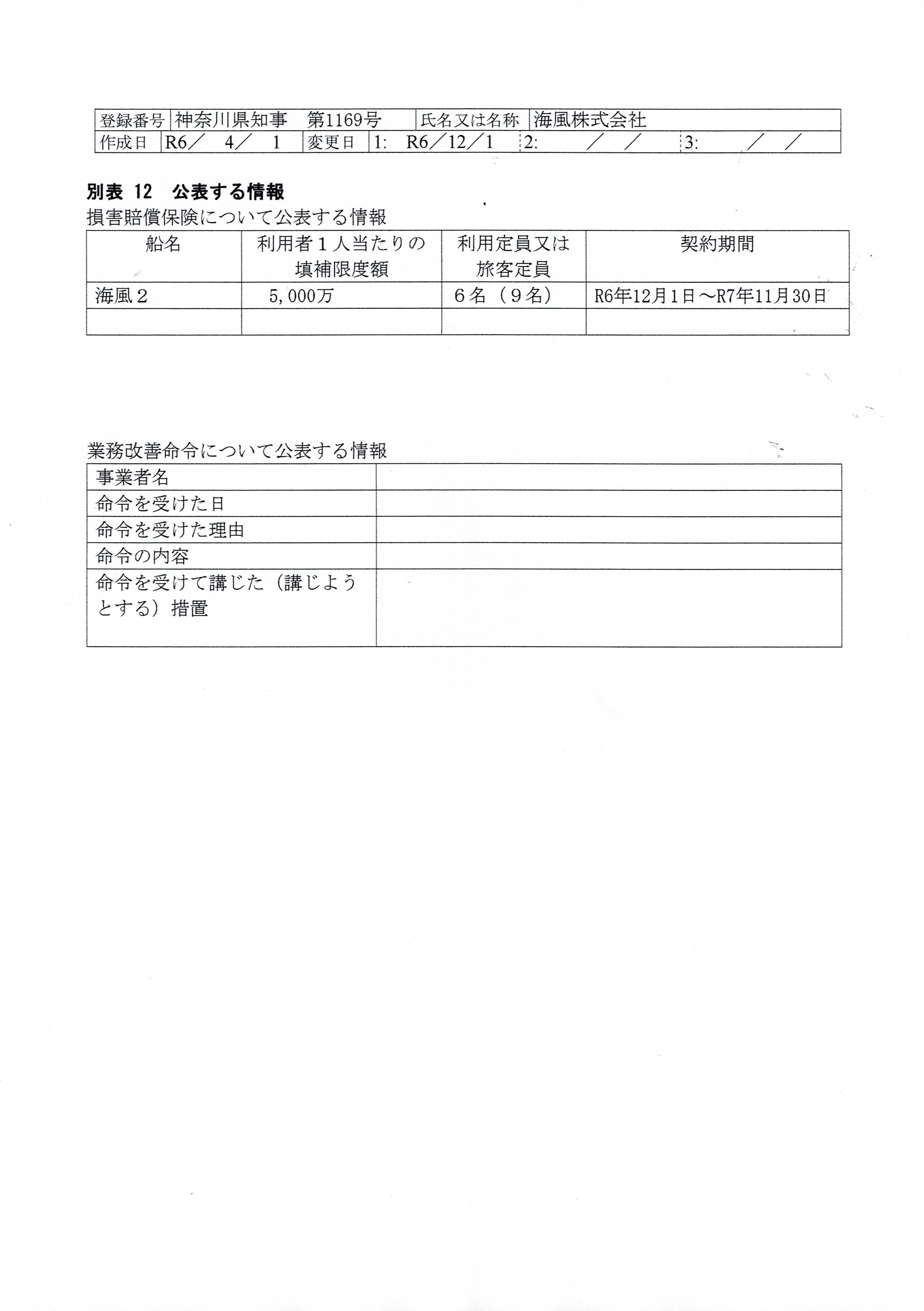 遊漁船業の適正化に関する法律第17条の規定及び弊社業務規程の規定に基づき、以下のとおり弊社業務規程と遊漁船業者登録標識を公示しています。
