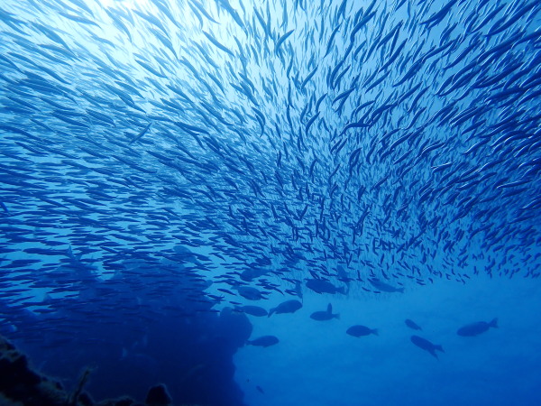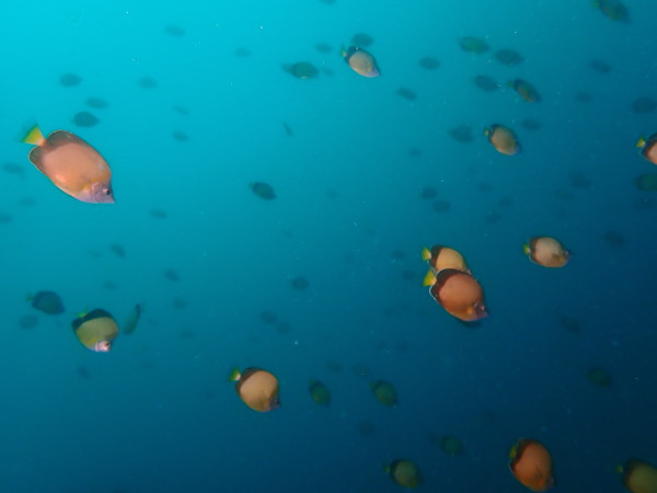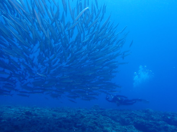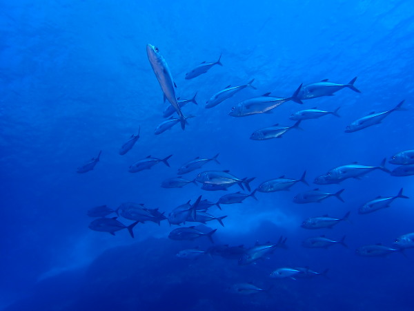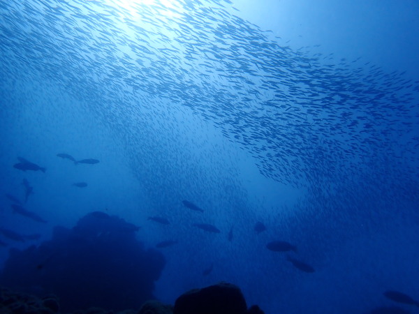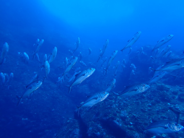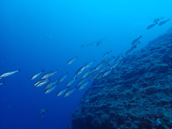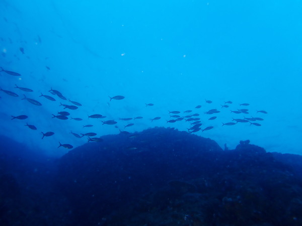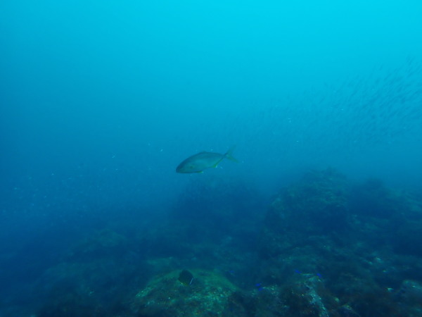 今日はKinugasaさんのリクエストで妻良に行ってきました!天気も良く快晴!海は鏡の様な凪、透明度も20m以上と最高の妻良でした。海の中は、最初は魚がいない。。。根を回り込むと、メジナの群れ、カゴカキダイの群れ!圧巻だったのはきびなごの群れです。物凄い量でしたので、青物も出てくるか?期待したのですが、ここは現れませんでしたが、カメが出てきました。テングダイも居て、楽しいダイビングをする事が出来ました。またダイバーも我々だけ!妻良の海を堪能した一日でした。