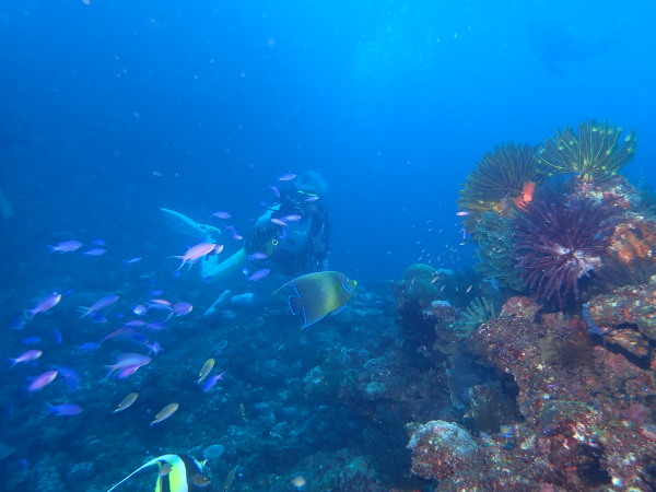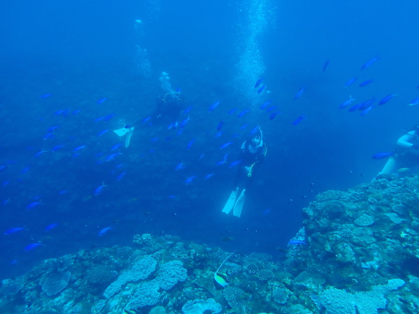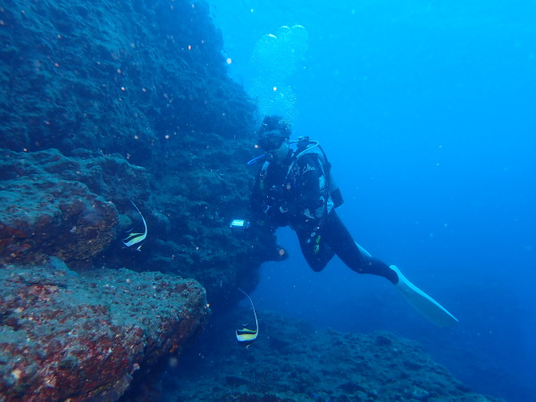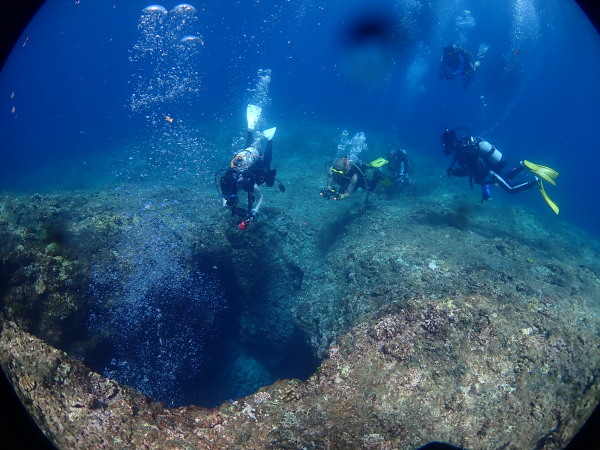 今年は夏の宮古島に行ってきました。宮古島に毎年行き約30年になります。夏の宮古島も久しぶりです。天気は良かったのですが、南風が強く、伊良部方面に行きましたが、水中は少し白っぽく、ただ日差しは強かったので、洞窟など光が射し込む所は本当に綺麗でした。これぞ宮古島の海と言った感じです。水温は29℃~30℃!暑い。毎年春先に行っているので5mmワンピースを持って行ってしまいました!失敗!全ファスナーを全開!後半はスーツを着ないで丁度良い!数名がスーツを脱いでのダイビング!初体験、スーツを着ないダイビング喜んでいました。スキルがある方出来る事ですね。最終日には、やっと下地島方面に、Takashimaさん念願の王女の部屋にも潜ることが出来ました。今回は結構ロウニンアジは見れましたね。Akeiさんは急な仕事で1日早く帰郷に。。。最終日などは潜っていても1人足りない?・・毎回錯覚していました。やはり、宮古島の海は地形好きには最高の海だと思います。また次回。。。流石にショップスタッフも変わっていきますね。毎年行っているところですが、寂しい感じもあります。