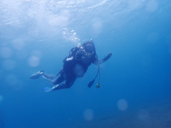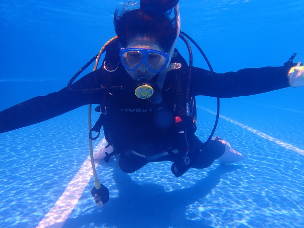 今日はOWDコースのプール講習です。天気も良く!気温も高いので、IOPのプールで実習を行ないました。冷たいか?・・22℃ありました。水も綺麗!貸切状態で講習を実施出来ました。Ozawaさんはダイビングがやりたく、余裕も出来てきたので、ダイビングに挑戦!Cカードを取得後もダイビングを続ける為の事も考えています。嬉しいですね!Cカードを取得するだけのダイバーは・・・やはりダイビングを続けないとね!講習の方は、フィンを付けるのは初めて、びっくりするほどフィンの使い方が上手い!マスククリア-等も難なくやってしまいます。器材の脱着には苦労をしていたみたいですが、数度やる事でコツもつかめてきたみたい!潜行も姿勢もっ良くなってきた。後は海洋実習で仕上げです。今度は魚もいますよ!楽しみましょう!