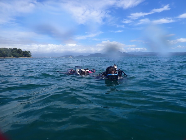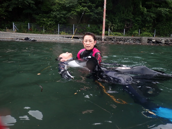 今日からSaitoさんのレスキューコースです!大瀬崎も天気も良く、海は凪状態!透明度は悪く1~2m!でも大丈夫!レスキューコースは、水面でやるスキルが多く、水中溺者捜索も透明度が悪いから物凄くリアルに出来ました。DM候補生のAkeiさんもTakashimaさんも久しぶりの溺者役、マスクの後が残るほどの日焼けをしてしまったAkeiさん!救助者が疲れて疲労ダイバーに!一同大爆笑!疲労ダイバーでも口だけは達者なSaitouさん!これは素晴らしかった!救助者を水中からアプローチでは、溺者を助けずに、私を助けてくれました!一同爆笑!非常に盛り上がったコースでした。認定おめでとうございます。DM候補生も更にスキルを上げるためにも細かいスキルを練習しました。年内に2名のDMも誕生すると思います。残りはドキュメントの提出ですかね!新DMがガイドする日も近いかも?皆さん!宜しくお願いします。楽しみ!