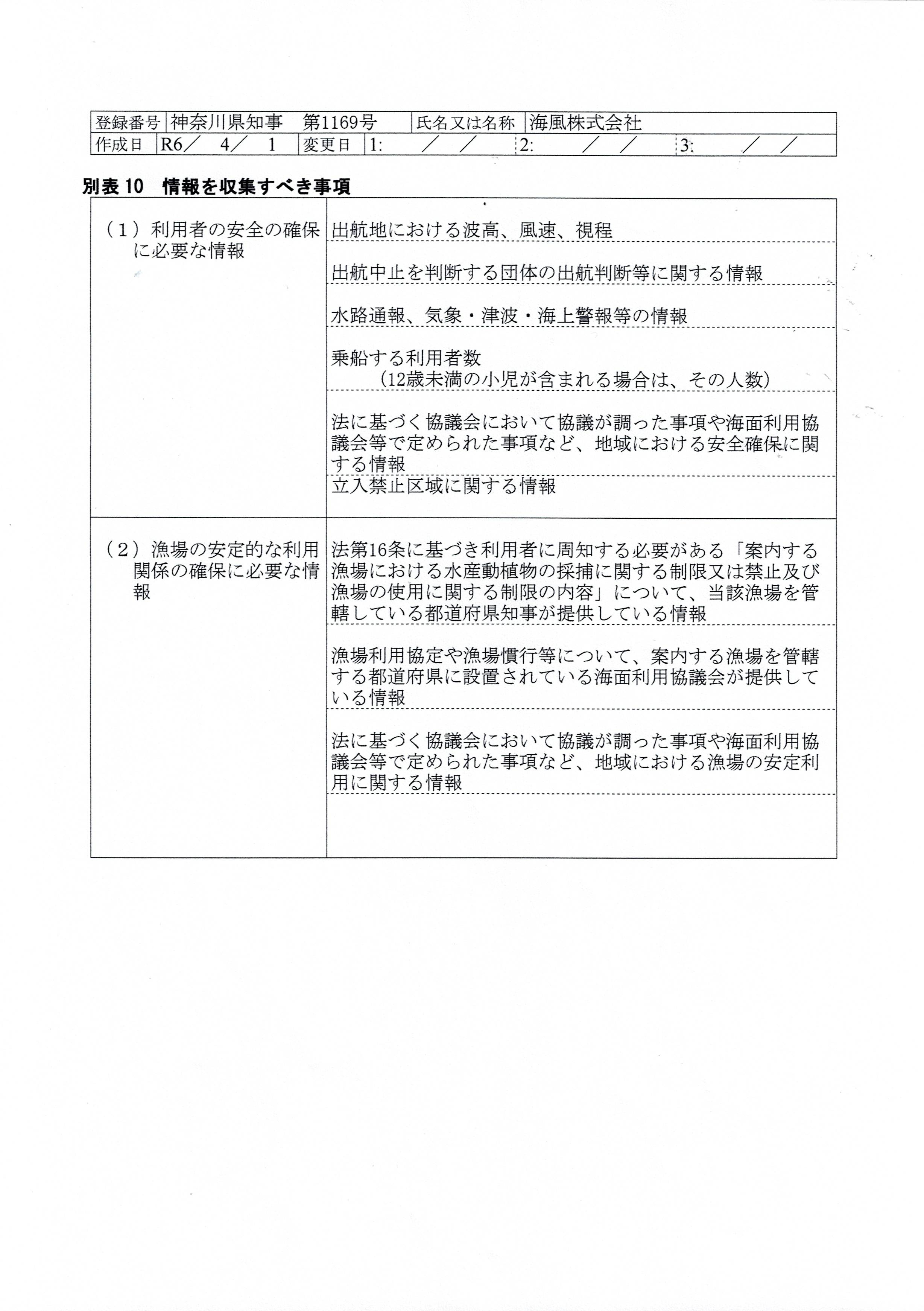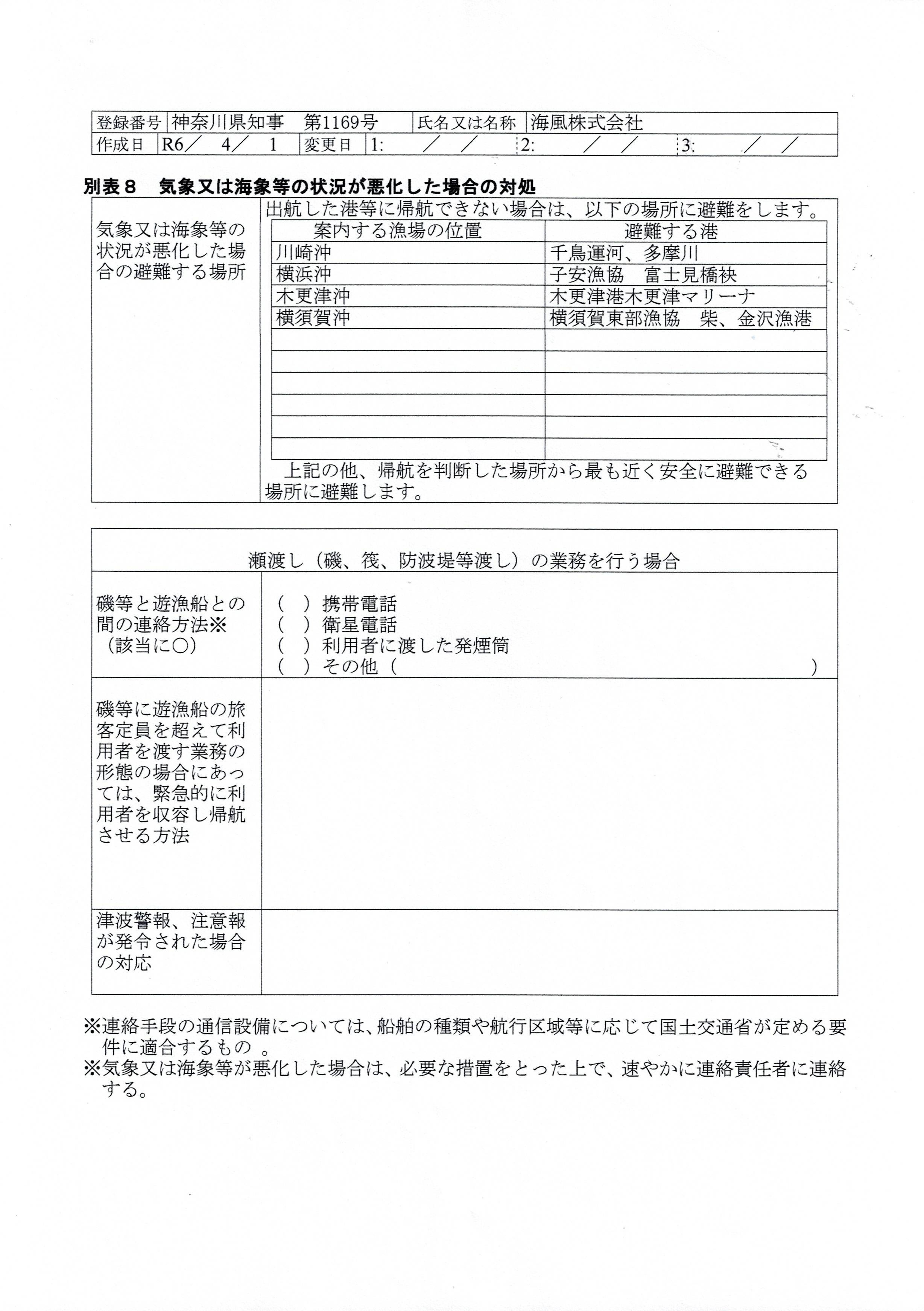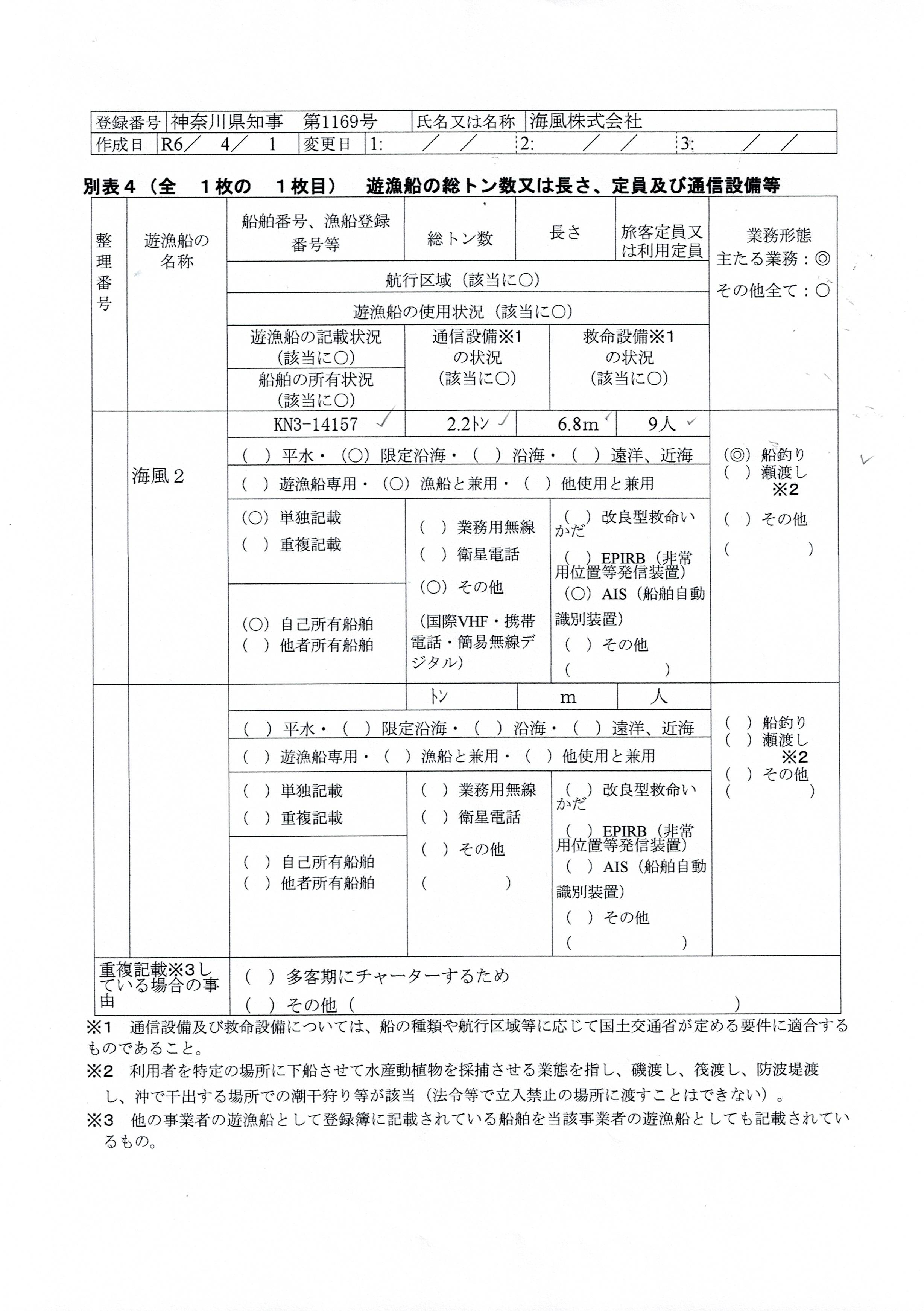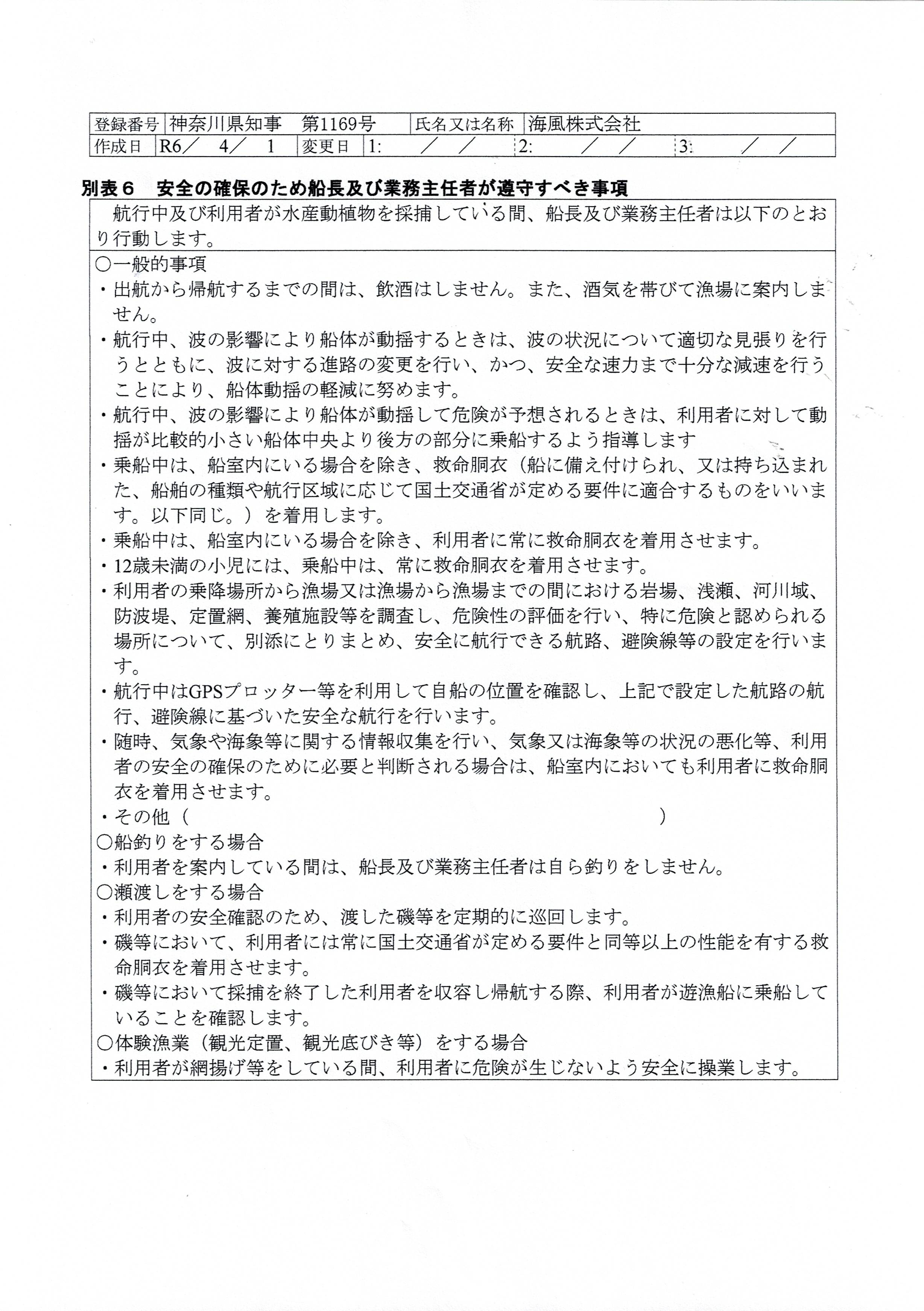 遊漁船業の適正化に関する法律第17条の規定及び弊社業務規程の規定に基づき、以下のとおり弊社業務規程と遊漁船業者登録標識を公示しています。
